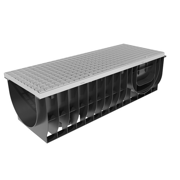 Лоток водоотводный Gidrolica Light ЛВ-30.38.28 пластиковый с решеткой РВ-30.37.100 ячеистой стальной оцинкованной комплект