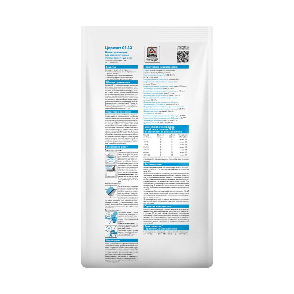 Белая затирка - наиболее востребованный цвет заполнителя швов. Подойдет для белой или светлой плитки. Наиболее часто применяется для заполнения плиточных швов при внутренней отделке помещений - ванных, прихожих, кухонь и т.п. Идеальная для узких швов - мелкая фракция позволит заполнить самые тонкие швы в 1 мм. Затирка Церезит СЕ33 имеет ограничения по применению (толщина шва, стабильность основания и отсутствие химической нагрузки), но все эти ограничения лежат, как правило, за пределами ремонта в квартире или частном доме. Фасовка 5 кг в большей степени предназначена для выполнения объемных работ - когда необходимо заполнить швы на площади до 25 м2.